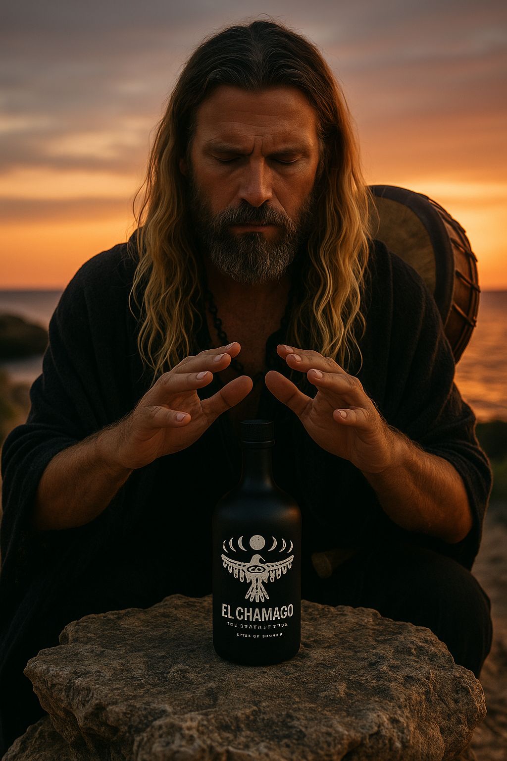 In the wild herb fields of Ibiza, legend tells of a shaman named El Chamago - A man of nature, spirit and vision. Guided by divine voices and drawn into a hidden cave, he discovered a glowing herb, pulsating with the energy of the island.